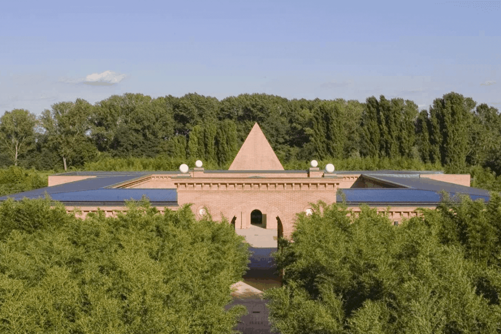 Al centro del Labirinto della Masone trovate una piazza di 2000 mq contornata da porticati e ampi saloni: ospiterà concerti, feste, esposizioni e altre manifestazioni culturali. Prospiciente la piazza, una cappella a forma piramidale ricorderà il labirinto come simbolo di fede.